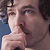 - Hand at mouth; Looking out